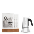 Ein Set zum Verschenken oder für sich selbst, um den Moka-Kaffee neu zu entdecken, nachhaltig, designorientiert und zu 100 Prozent genussvoll.