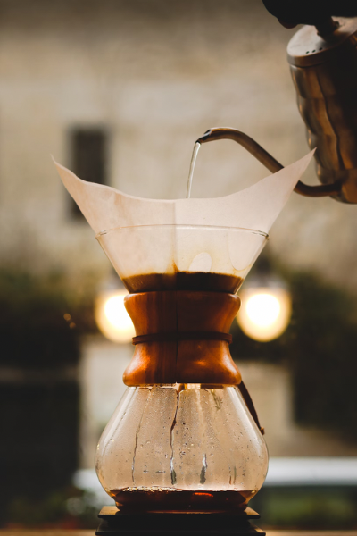 - Matériel nécessaire : Chemex, filtres Chemex, bouilloire à col de cygne, moulin à café, balance, minuteur