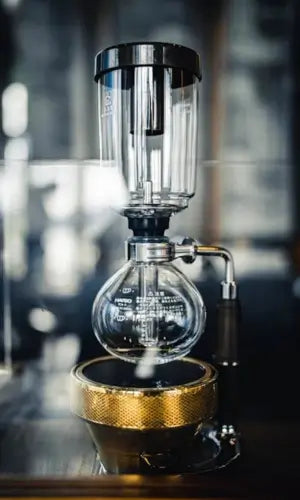 - Matériel nécessaire : Cafetière à dépression, brûleur, moulin à café, filtre, café en grains, balance, cuillère, minuteur, eau chaude