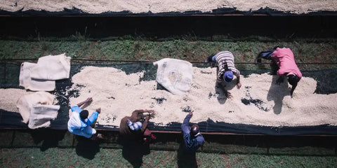 La récolte est manuelle, les cerises sont triées avec soin, puis fermentées et lavées dans de l’eau de source avant un séchage lent sur lits africains.