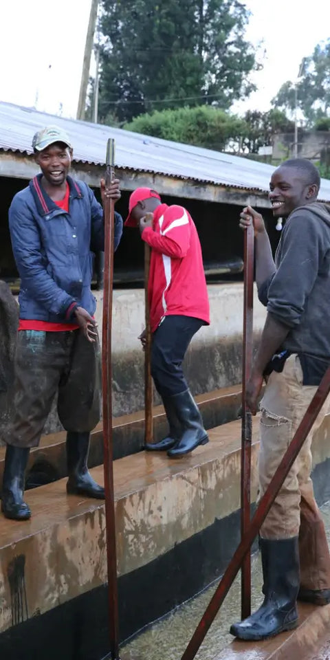 La station de lavage Ndaro-ini a été créée en 1984 par un groupe d’agriculteur·rice·s passionné·e·s, désireux·ses de valoriser leur café sans intermédiaire. Elle regroupe aujourd’hui environ 700 petits producteurs membres, chacun cultivant des parcelles de moins d’un hectare au pied du mont Kenya.